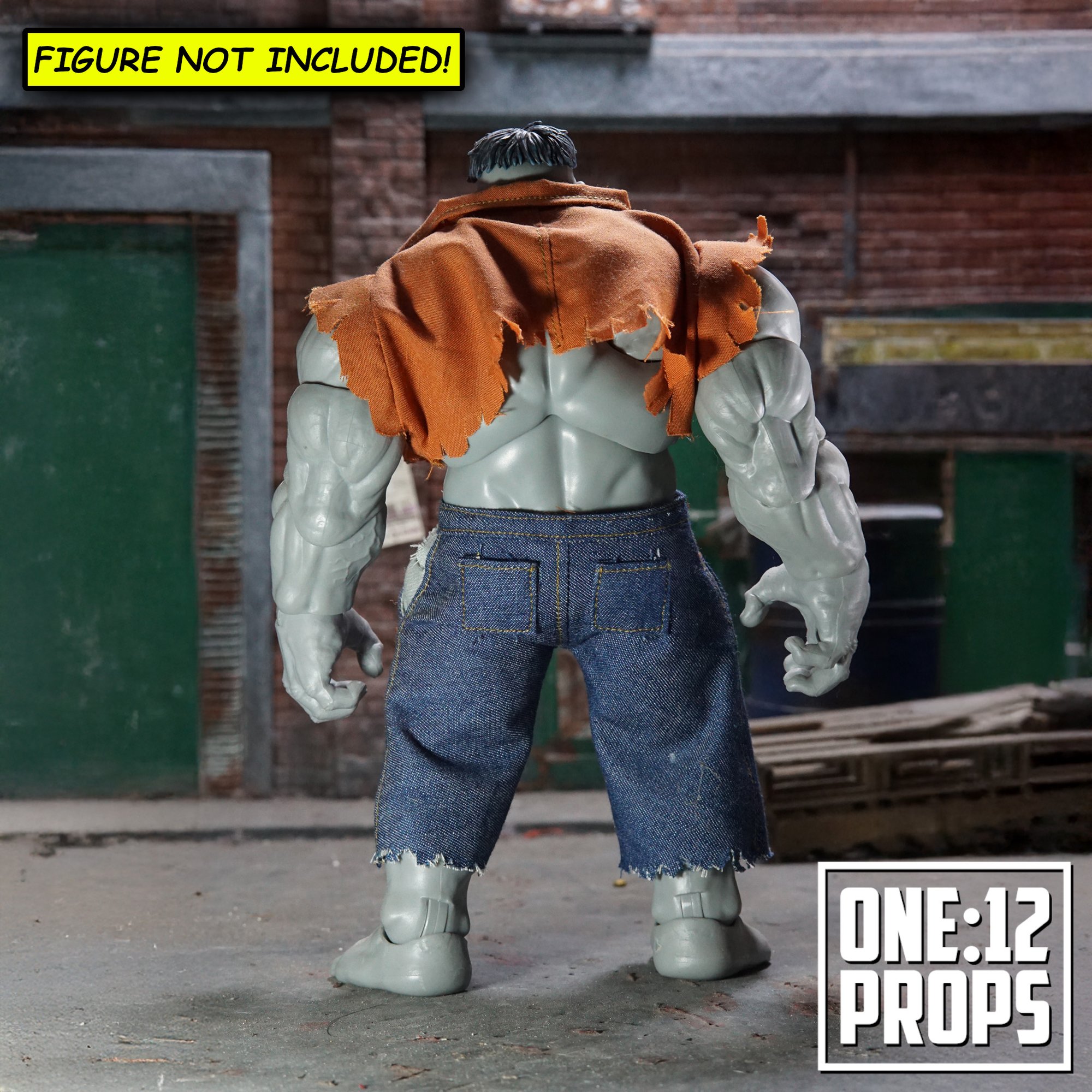 Upgrade your Marvel Legends Grey Hulk with this custom pants and tattered shirt.